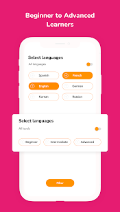 + Languages, gender and learning level (beginner to expert) can be sorted to make language learning easier