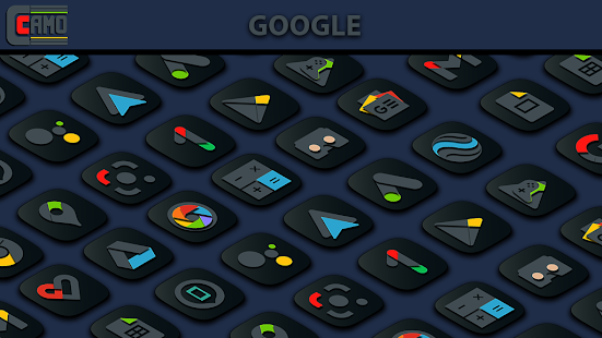 Featuring the camouflaged codename CAMO, a true dark icon pack with vibrant pop-up colors. Check another light version if you like light icons.