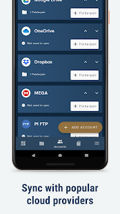 FolderSync allows easy synchronization with cloud-based storage to and from local folders on the device’s SD cards. It supports a wide range of different cloud providers and file protocols, and support for more platforms is continually being added. Root file access supported on rooted devices.