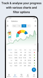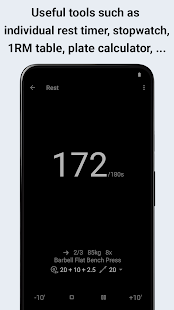 + session statistics, graphs and reports (1RM, training volume, calories, rest)