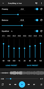 + Equalizer: 8-band graphic equalizer and preamp and balance control.