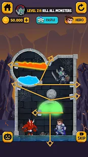Solve puzzles and rescue the hero, collect all treasures, kill monsters and save the princess. Pull the pin to destroy your enemies, pulling lava and poison gas into your puzzle units. Cut the ropes to rescue the princess from scary monsters.