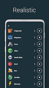 + More than 25 effects: robot, alien, zombie, helium, drunk, chipmunk, death, cave, submarine, devil, phone, whirlpool, fan, … and many more!
